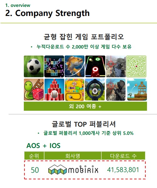 모비릭스는 상장 당시 게임 다운로드 접속자와 다운로드 횟수 등을 강점으로 내세우면서 뭔가 대단하다는듯이 말하고 있었고 실제로 대단할 수도 있었지만 영업이익이 손실 나면서 수익화에 실패한 것으로 보임.