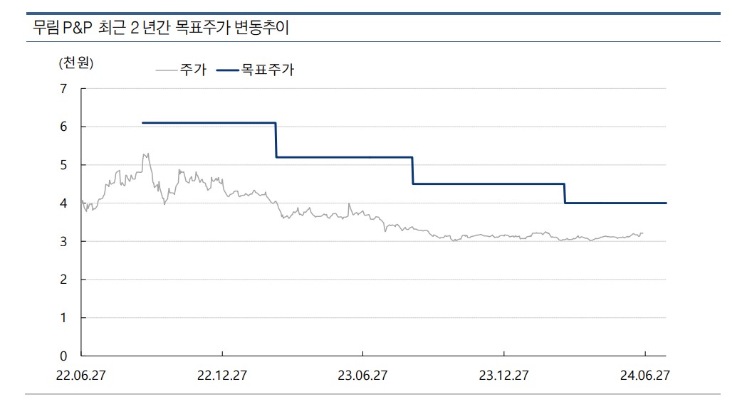 무림P&P의 목표주가는 4,000원으로 제시되었으며, 이는 현재 주가 대비 약 25% 이상의 상승 여력을 보유하고 있음.