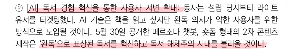 - 기술적 분석: AI 기반의 맞춤형 추천 서비스 도입으로 이용자 경험 향상.