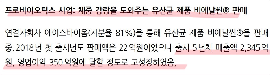 - 프로바이오틱스 제품 비에날씬: 지속적인 판매 증가