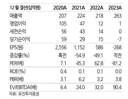 | 매출액 | 224 | 218 | 263 | 69.4 |