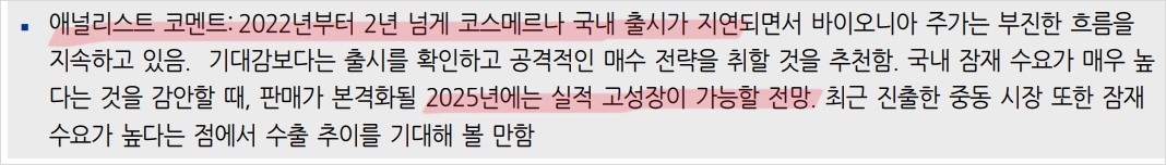 바이오니아의 주가는 향후 꾸준한 상승세를 보일 것으로 예상됩니다. 2분기 실적이 시장 기대에 부합하고 있으며, 프로바이오틱스 제품 비에날씬의 판매가 꾸준히 증가하고 있습니다. 특히, 코스메르나의 출시가 지연되었으나 중동 및 동유럽 시장에서 판매를 확대 중입니다. 바이오니아의 전략적 사업 재편과 수익성 개선 노력이 긍정적인 영향을 미칠 것입니다. 목표주가는 35,000원으로 제시되며, 현재 주가 대비 20%의 상승 여력을 가지고 있습니다.