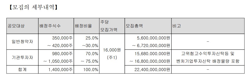 | 공모가격(희망공모가액) | 20,000 ~ 25,000 원 |