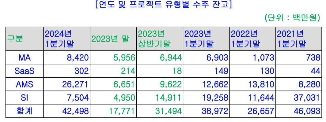 뱅크웨어글로벌은 최근 몇 년간 지속적인 성장세를 보이고 있음. 2022년 매출은 약 729억 원, 2023년 매출은 약 7,289억 원을 기록함. 그러나, 2024년 1분기에는 매출 감소와 연구개발비 증가로 인해 영업손실을 기록함. 이러한 영업손실은 주로 일본 대형 프로젝트의 중단과 신규 수주 활동의 부진에서 기인함. 하지만, 향후 BADA 소프트웨어와 신규 소프트웨어 연구개발을 통해 재무 상태가 개선될 것으로 전망됨.