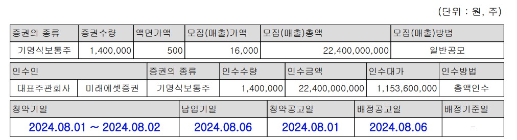 | 납입기일 | 2024.08.06 |