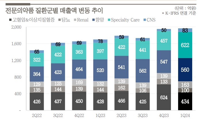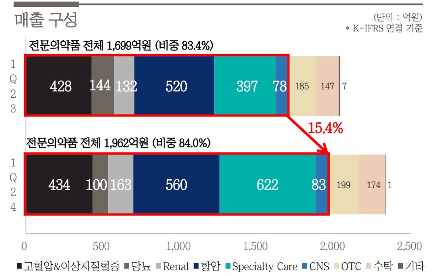 보령은 전통 제약사로, 주요 사업 부문에서의 성장을 통해 지속적인 매출과 영업이익 증가를 이루고 있음. 2024년 1분기 실적에서 매출액 233.6억 원, 영업이익 16.4억 원을 기록하며, 시장 예상치를 상회하는 성과를 보임.