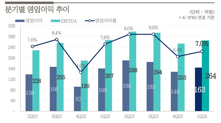 - 2024년 1분기 매출액 233.6억 원, 영업이익 16.4억 원