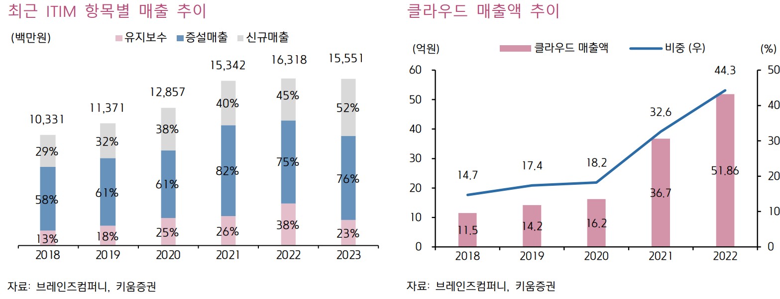 브레인즈컴퍼니는 IT인프라 통합관리 솔루션을 제공하는 기업으로, 안정적인 EMS 사업 외에도 ITSM 모듈과 클라우드, AI 기반 솔루션의 성장성이 중요함. 에이프리카 인수를 통해 클라우드와 AI 사업을 강화하고 있으며, 향후 고전력 IDC 사업 확장이 기대됨. 2024년 실적은 매출액 295억원, 영업이익 55억원으로 전망됨. 장기적으로 안정적인 Cash Cow 역할을 하며, 클라우드 솔루션과 AI 개발 인프라 플랫폼의 성장이 예상됨.