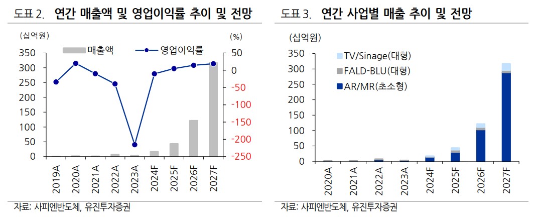 AR Glass 에 Micro-LED 가 채택된다면, 동사의 DDIC 는 대당 총 6 개가 사용될 것으로 예상함. 프리미엄 AR Glass 는 대당 약 20$로 예상되어 AR Glass 가 백만 대 판매시 200 억원대, 천만대 판매시 2,000 억원대를 예상함. 수익성은 20~25% 를 목표로 하고 있음.