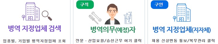 | 기업 매칭 서비스 | 병역 특례자를 찾는 기업과의 연결 | 회원가입 후 지원 |