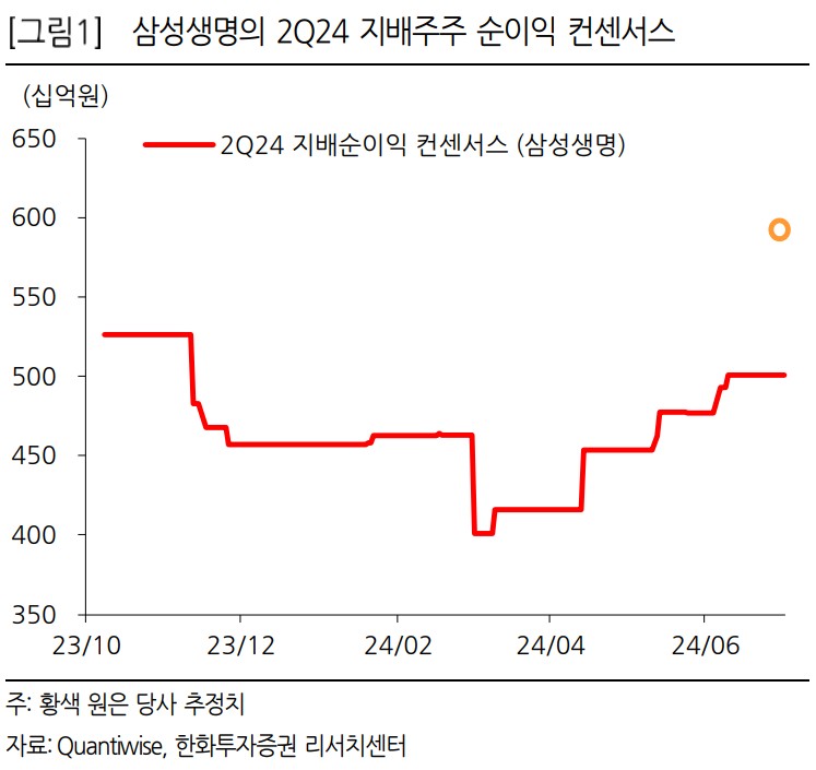 삼성생명의 2024년 2분기 실적은 어닝 서프라이즈를 나타낼 것으로 기대됨. 주요 원인으로는 삼성카드의 증익과 양호한 시장 환경이 있음. 2분기 연결 지배 순이익은 5,914억원으로 예상되며, 이는 전년 동기 대비 121% 증가한 수치임. 전년 동기 대비 투자손익이 대폭 증가하면서 지배 순이익이 크게 증가할 전망임. 그러나 계절적 배당수익 감소로 인해 영업이익은 전분기 대비 감소할 것으로 보임. 하반기에도 긍정적인 실적이 기대됨.