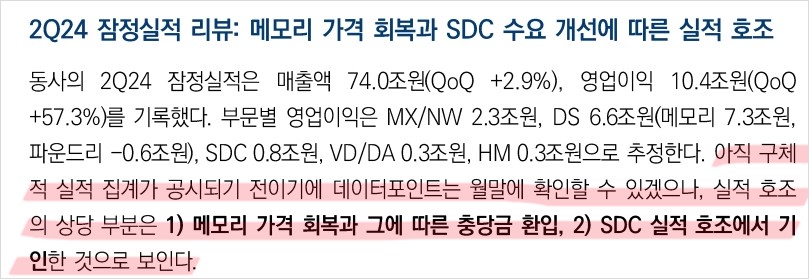 • 2024년 2분기 매출 60조 원 전망