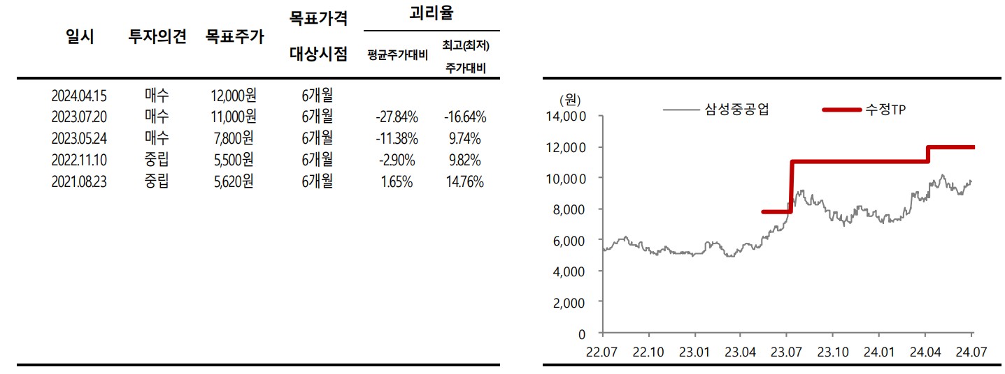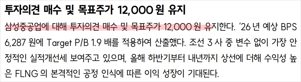 - 삼성중공업의 목표주가는 12,000원으로 유지됨