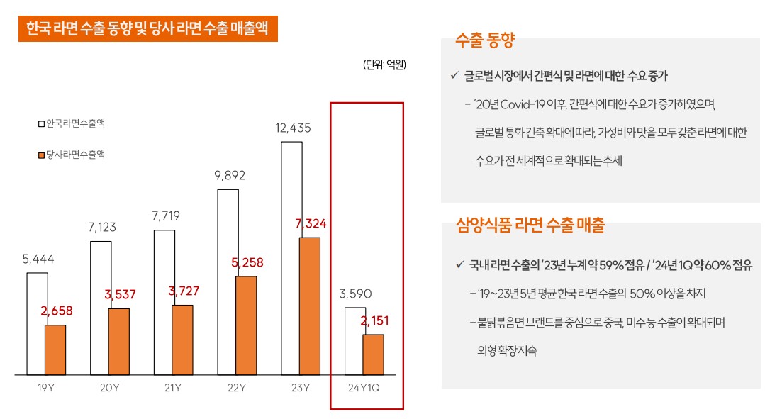 - 불닭볶음면 등 주요 제품군의 수출 호조