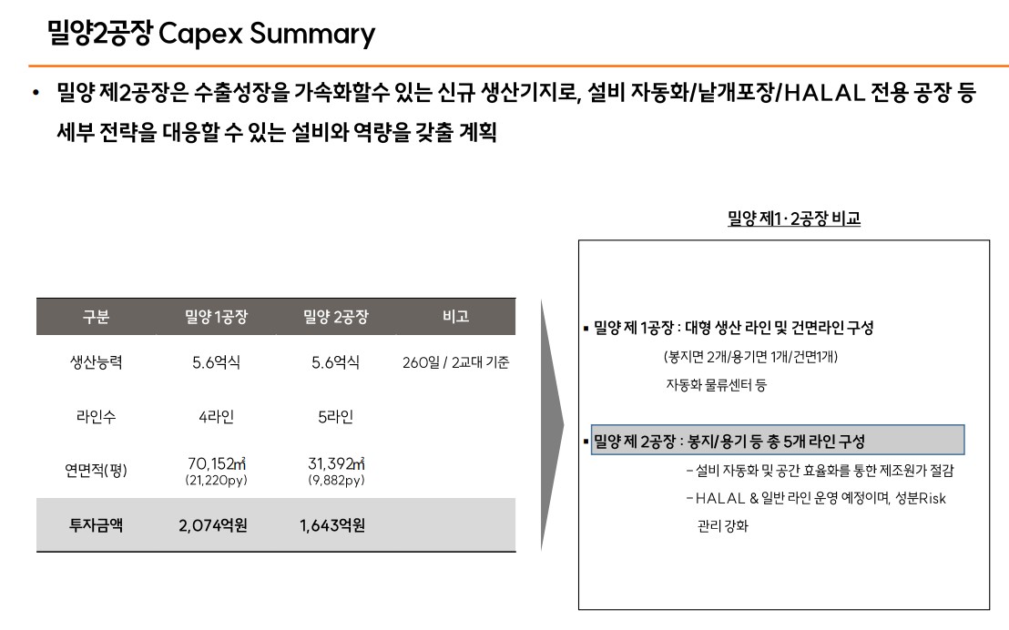 - 기술적 분석 내용: 밀양 제2공장 증설을 통한 생산 능력 확대