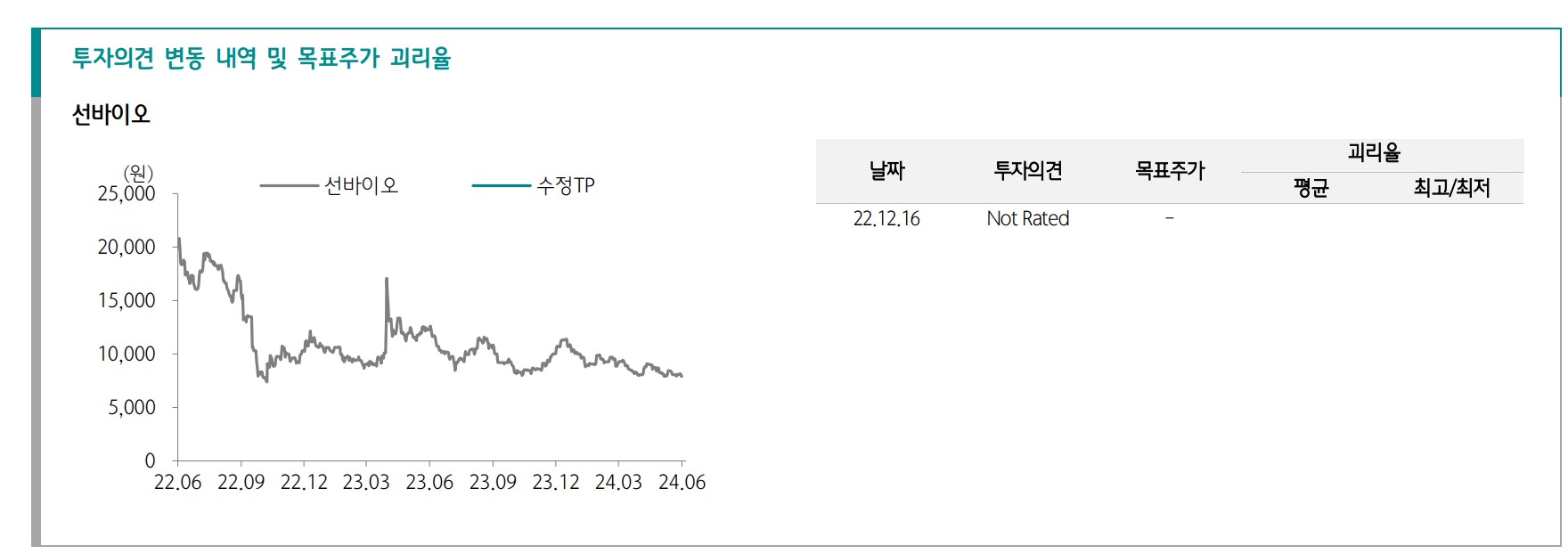 선바이오 목표주가 15,000원. 신규 수요처 확보와 실적 개선 반영. 현재 주가 7,910원, 목표주가 대비 상승 여력 충분.