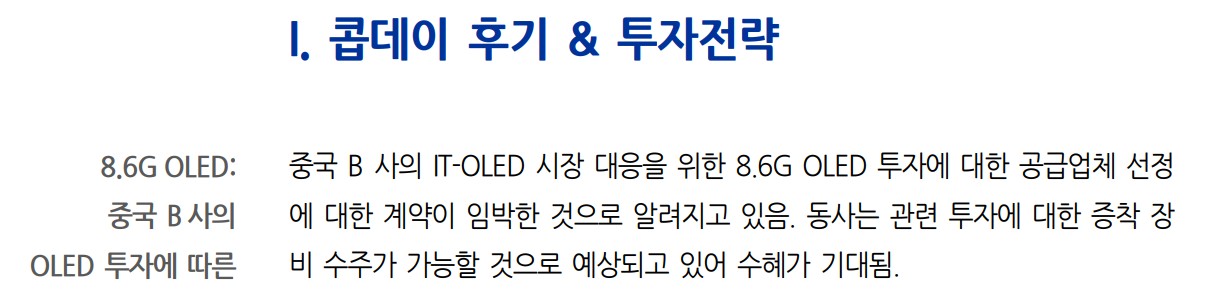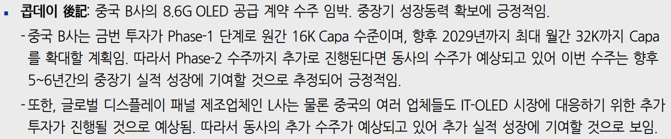 - 중국 B사와의 8.6G OLED 공급 계약 기대