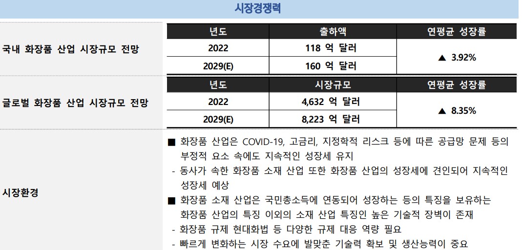 - 글로벌 화장품 시장 성장과 함께 매출 증가