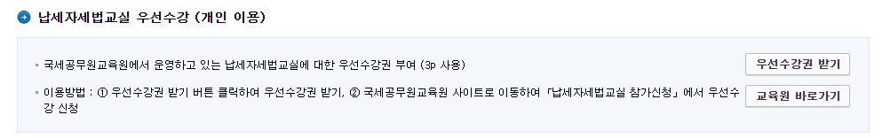 - 이용방법: 홈택스에서 우선수강권 받기 클릭 후 신청.