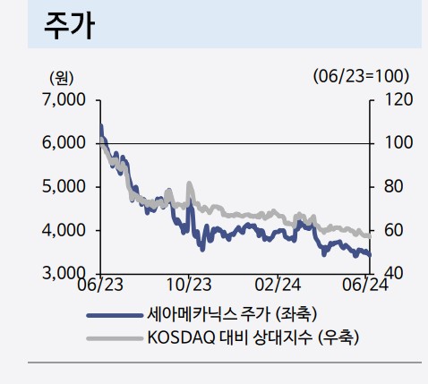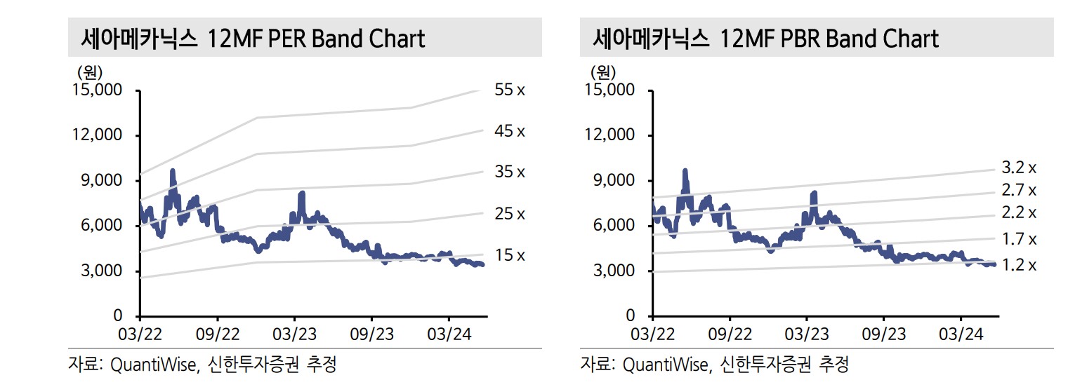 세아메카닉스의 주가는 전자 및 자동차 부품 부문의 성장에 힘입어 상승세를 이어갈 것으로 전망됨. 2024년 예상 실적을 바탕으로 한 목표 주가는 5,000원으로 설정되어 있으며, 이는 현재 주가 대비 약 43.6%의 상승 여력을 보임. 세아메카닉스는 전자 및 자동차 부품의 수요 증가와 포트폴리오 다각화를 통해 지속적인 성장세를 보일 것으로 기대됨. 향후 몇 년간 세아메카닉스의 주가는 안정적인 상승세를 유지할 것으로 보임. 이는 전자 및 자동차 부품 부문의 지속적인 성장이 주된 요인으로 작용할 것임.
