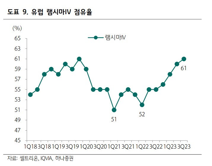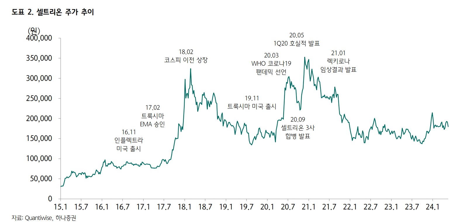 셀트리온은 바이오의약품 개발 및 생산에 주력하는 글로벌 기업임. 주요 제품으로는 바이오시밀러, 항체 치료제 등이 있으며, 2024년 1분기 기준 매출액은 7,370억 원을 기록함. 최근 짐펜트라와 같은 신약 출시로 매출 확대가 기대됨.