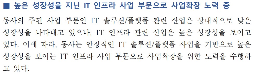 - 미래 주가 전망: IT 인프라 사업 부문 성장에 따른 주가 상승 예상
