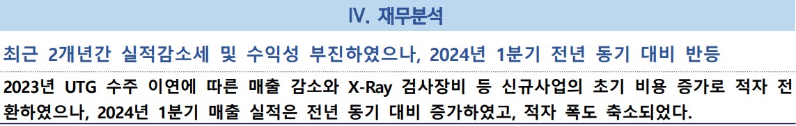 - 기술적 분석: UTG 및 X-Ray 검사장비 기술력 강화