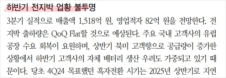 • 기술적 분석 내용: 전지박 부문의 수익성 회복이 지연되면서 주가에 부정적인 영향을 미침.