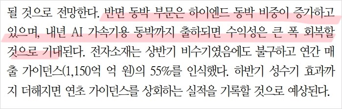 • 동박 부문에서 하이엔드 제품의 비중 증가와 AI 가속기용 동박 수요 증가가 기대됨.
