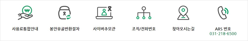 장례식장 접수 문의는 031-218-6560, 승화원 접수 문의는 031-218-6500입니다.