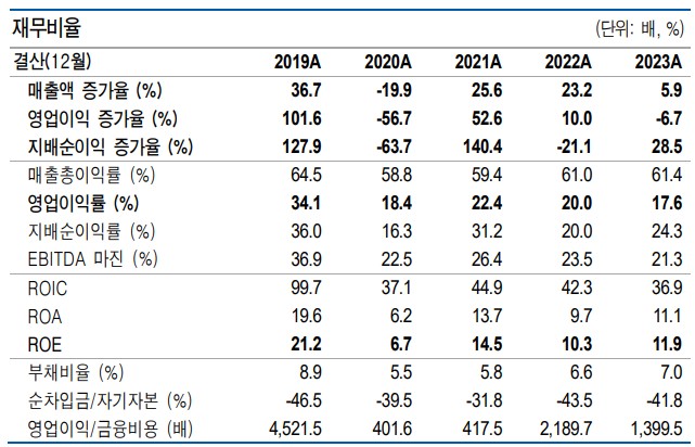 • 2020년을 제외하면 꾸준한 매출성장세를 보임.
