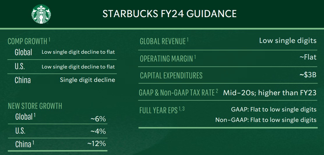 스타벅스 주가에 악영향을 끼치는건 요즘 하늘을 날라다니고 있는 AI주들과 기술주들임. 스타벅스는 대표적인 가치주인데 데 성장주인 기술주들에게 미국 증시 돈이 죄다 몰리면서 상대적으로 가치주들의 주가가 떨어지고 있음. 시장에 돈은 한정되어 있으니 한 쪽으로 돈이 몰리면 한쪽에는 빠져나가는거지.