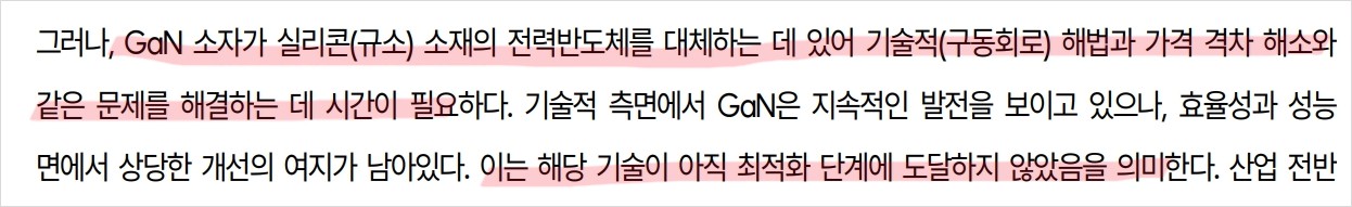 - 기술적 분석: GaN 소재 전력반도체 개발을 통한 시장 확장