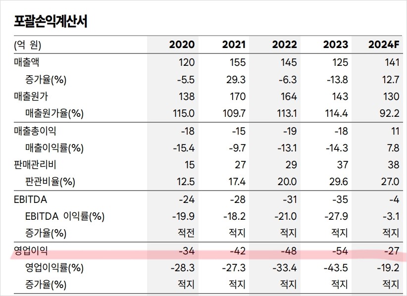 | 영업이익 | -42억 | -48억 | -54억 | -27억 |