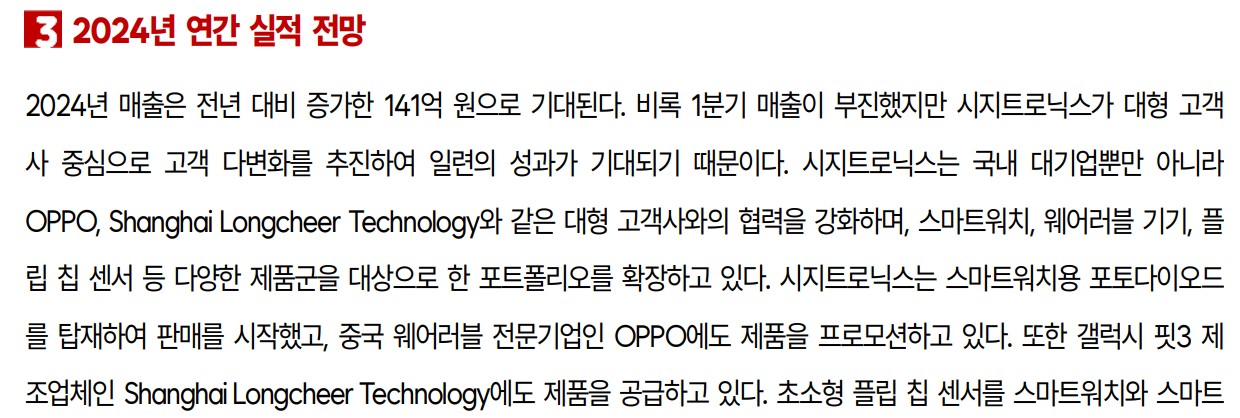 A. 시지트로닉스의 재무 상황은 2023년 다소 부진했으나, 2024년 매출 증가와 영업손실 축소가 기대됩니다.