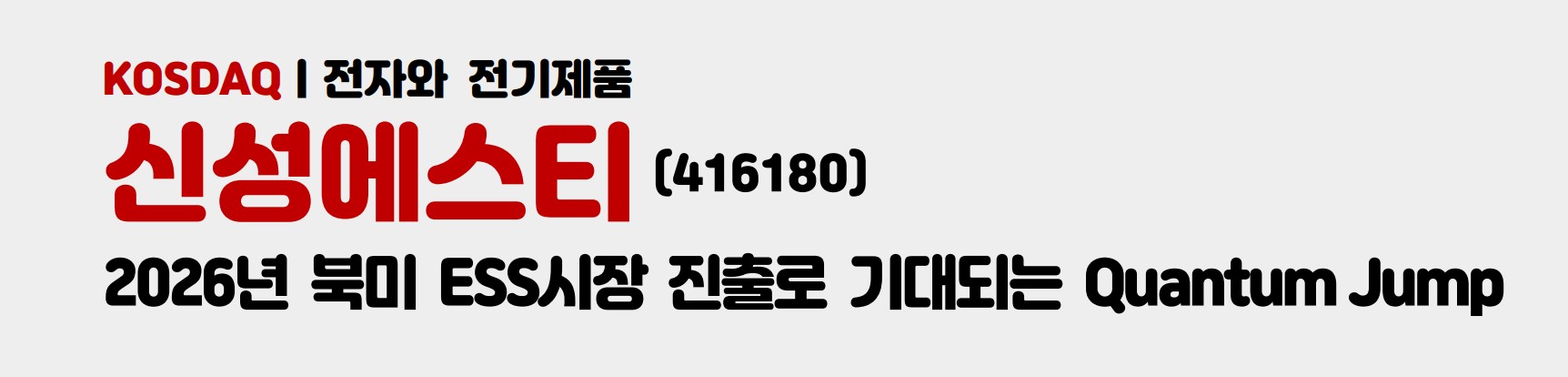 최근 북미로 진출하는 S사로부터 2.4조원에 달하는 ESS 컨테이너 대량 수주를 확보하며 사업영역을 확장하였음. 신성에스티는 부산 미음산단으로 공장을 이전하고 북미에도 공장을 설립할 예정으로, 향후 매출 성장이 기대됨. 본 글은 투자 권유글이 아님. 모든 투자책임은 본인에게 있음. (💣쉬버.. 그놈의 2차전지.. 내 추천주로 손실 회복중..)