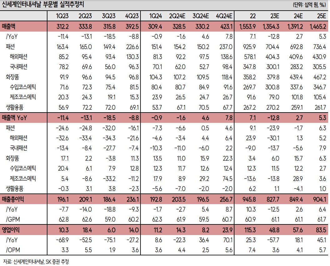 - 해외 패션 부문 매출 3.4% 감소 예상