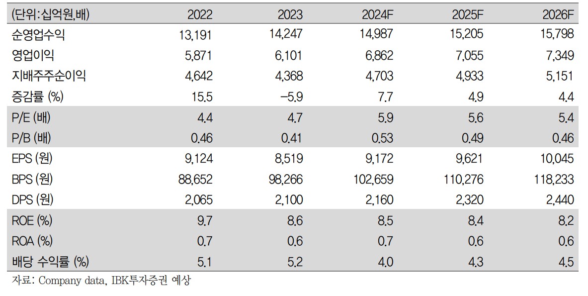 • 부동산 PF 충당금 증가 예상, 연간 가이던스 내 관리