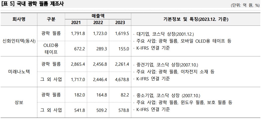 - 기술적 분석: 광학 필름 및 모바일 OLED용 테이프 강세