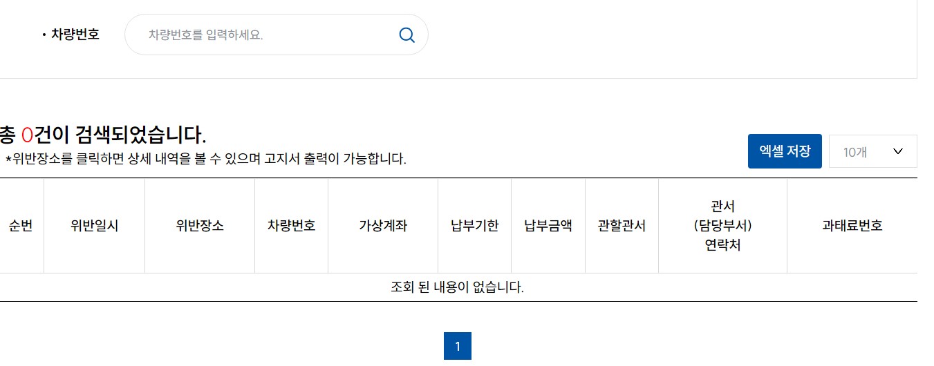 2. 차량번호를 입력하고 조회를 눌러줍니다. 0건이 검색되었다면 안 찍힌거고요, 무언가 조회가 된다면 그것은 .. 눈물이 또르르.. 세상에서 제일 아까운 돈을 버려야 합니다 ㅠㅠ