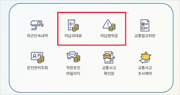 1. 미납과태료 or 미납범칙금 메뉴로 가줍니다. 신호위반이나 과속이라면 범칙금으로, 주차위반이라면 과태료로 가시면 됩니다.