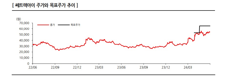 쎄트렉아이의 목표주가는 65,000원으로 제시됨. 이는 현재 주가 대비 약 23.3% 상승 여력을 보임. 나는 더 오를거 같은데;;