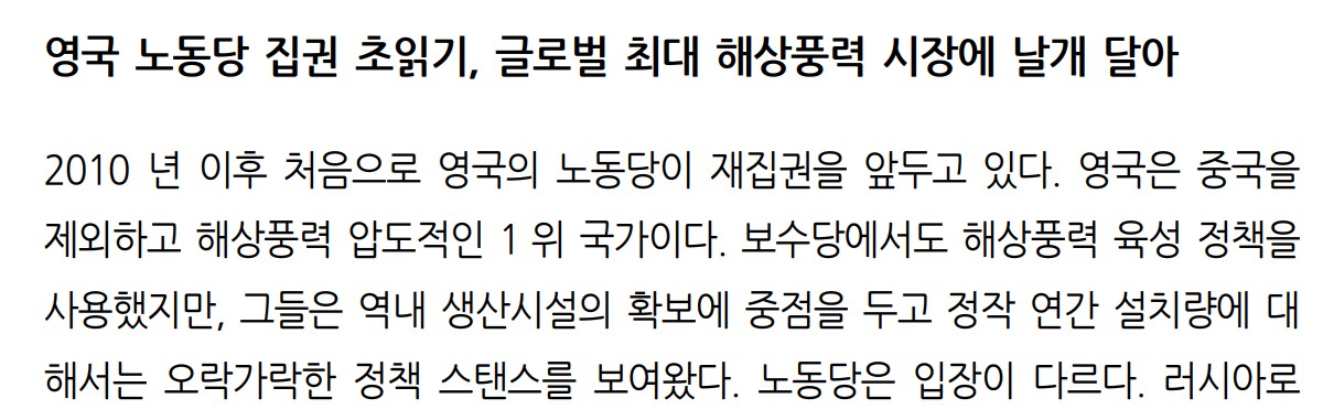 씨에스윈드의 최근 주요 이슈는 Bladt 고객사들과의 가격 협상 합의로, 이는 내년까지도 안정적인 흑자 기조를 이어갈 수 있는 기반이 됨. 영국 노동당의 해상풍력 목표량 확대는 씨에스윈드에게 큰 호재로 작용할 것. 또한, 미국 트럼프 재집권 가능성에도 불구하고, 재생에너지 시장은 안정적인 성장을 이어갈 전망. 씨에스윈드는 글로벌 풍력 시장에서의 입지를 더욱 강화할 것으로 보임.