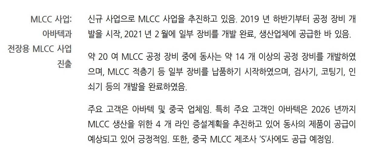 • MLCC 제조장비 부문 아바텍의 생산 라인 증설 계획