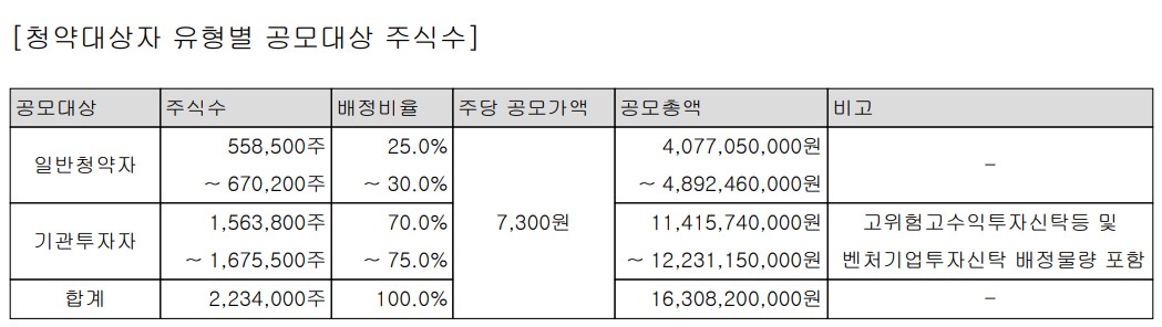 공모가격(희망공모가액) 7,300원 ~ 8,500원