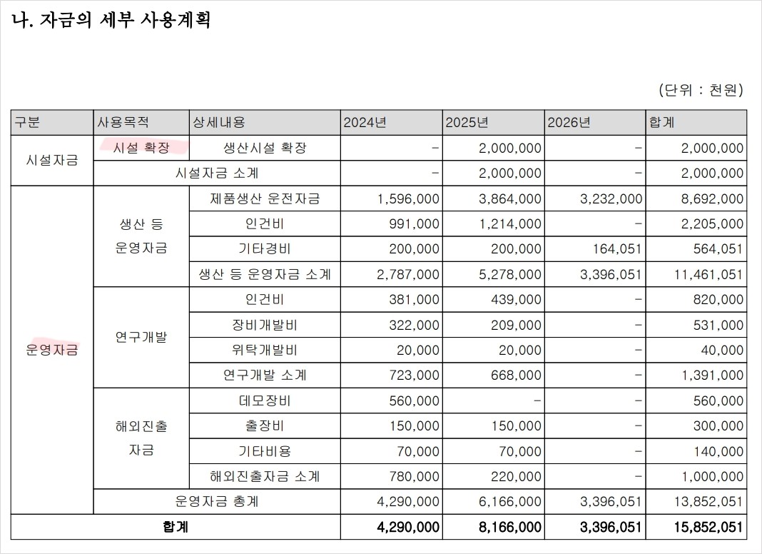 공모금액 사용처를 잘 보면 시설확장과 운영자금이 전부임. 특히 운영자금에서 제품생산운전자금에 들어가는 돈이 가장 커서 앞으로 실질적인 매출에 기여할 수 있을거라고 봄. 즉, 말만 번지르르한 바이오 기업이 아니라 실제 매출액이 발생할 기업이라는 것