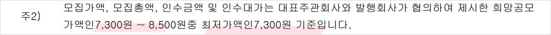 | 공모가격(희망공모가액) | 7300 ~ 8500원 |