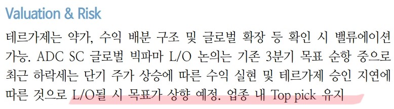 알테오젠은 현재 글로벌 파트너사와의 협력 강화로 인해 긍정적인 실적을 기대할 수 있음. 테르가제의 승인과 ADC SC 기술이전의 성공적인 진행은 향후 매출 증가에 크게 기여할 것으로 보임. 또한, 피하주사 기술의 혁신적인 발전과 더불어, 글로벌 시장에서의 경쟁력을 강화하고 있음.