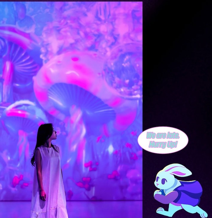 이번 전시는 '이상한 나라의 앨리스'를 테마로 하여 다양한 미디어 아트와 인터랙티브 설치 작품을 선보입니다. 관람객들은 마치 앨리스처럼 동화 속 세계를 모험하며 다양한 체험을 할 수 있습니다. 전시장은 총 8개의 구역으로 나뉘어 있으며, 각 구역마다 독특한 테마와 함께 다양한 미디어 아트 작품들이 전시됩니다. 인터미션 10분을 포함한 총 50분 동안 다양한 작품을 감상할 수 있습니다.