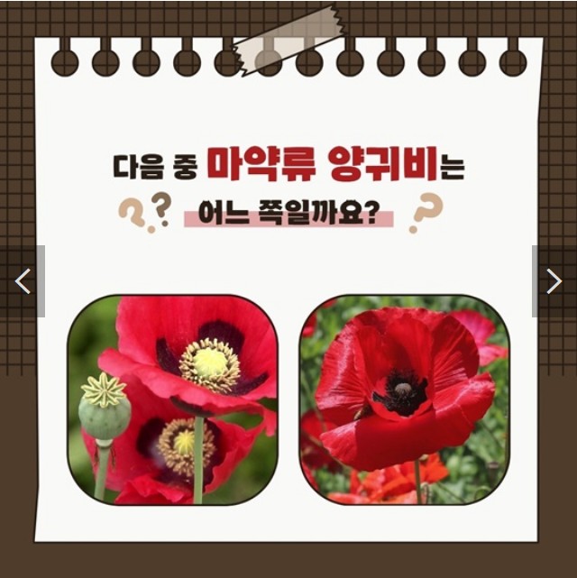 현재 인적이 드문 시골이나 농지에서 누군가 몰래 양귀비 꽃을 심고 재배하는 일이 종종 있다고 합니다. 구분법을 잘 익히셔서 의심되는 꽃이 있다면 꼭 경찰에 신고하셔야 합니다. 포상금은 없지만 나라를 위해서 신고해야죠!!